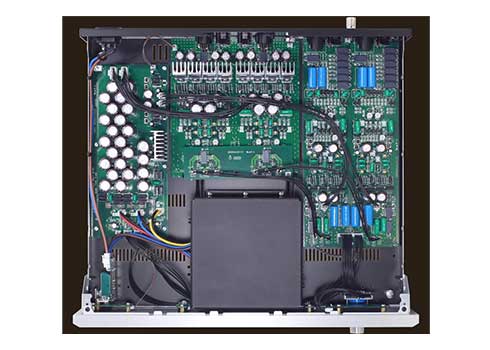 無帰還アンプの最大のメリットは、高域を無制限に伸ばせることで得られる優れた過渡応答性にあります。そして、基本的に帯域制限を受けないアナログソースにより、無帰還アンプはさらにその真価を発揮します。E-1は伝説のフォノイコライザー「ph1.0」の回路構成・部品を踏襲しながら、さらに細部を磨き上げ誕生させました。RIAA素子を電圧増幅回路の負荷に挿入することで、ゲインそのものがRIAA特性になる独自の回路方式を採用しており、高域のダイナミックレンジが問題になるCR型や、帯域によりNF量が変わってしまうNF型の両方の欠点を排除し、100kHz以上に渡る全周波数帯域において均一なクオリティを獲得しています。また使用するCRパーツには1%精度のMELF抵抗と2%精度のポリプロピレンフイルムコンデンサを新たに採用し、カーブ特性には万全を期しています。この結果、ph1.0の魂はそのままに、透明な空気感と情報量、音のリアリティが格段に向上しています。